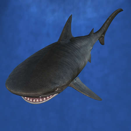 Shark in the blue water. Underwater world. 3D illustration.