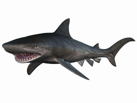 Scary shark floats on the ocean floor.