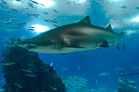 Big wild shark in the marine aquarium in the oceanarium