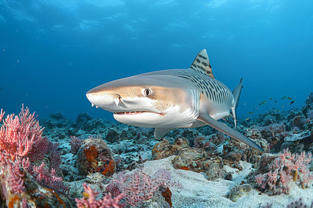 Picture shows a Tiger shark at the Bahamas, Bahamas.Shark (Carcharodon carcharias)