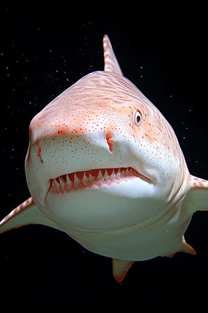 Scary shark with sharp teeth protruding from its mouth underwater world
