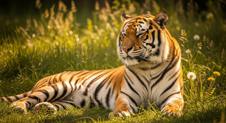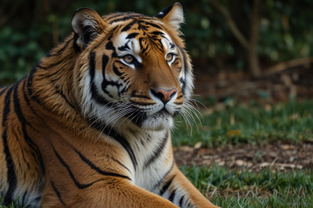 Relaxing tiger resting in its natural jungle habitat