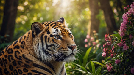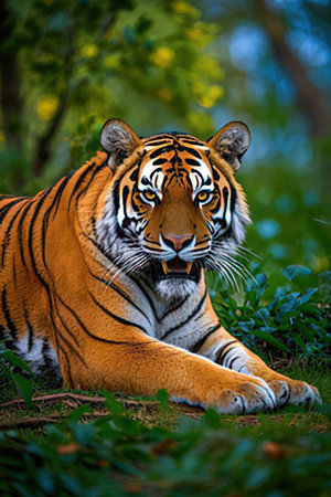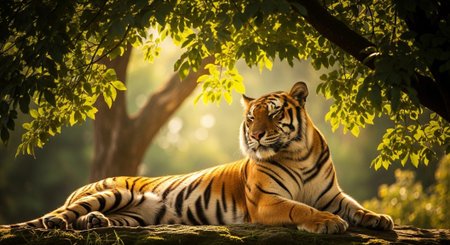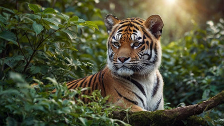Majestic tiger in lush green forest habitat