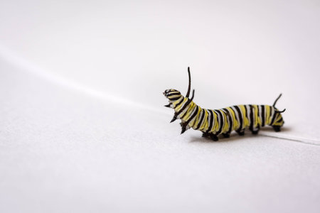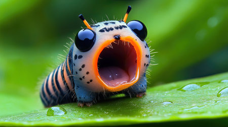 AI Generated. Macro Closeup of a Tiny Colorful Caterpillar with Visible Legs
