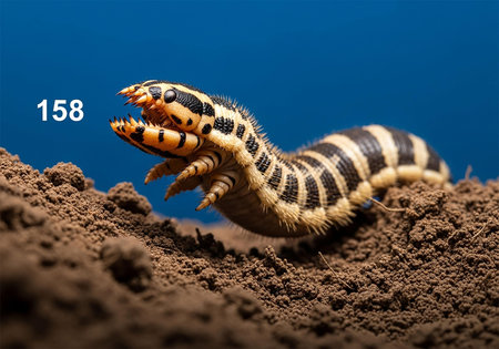 Explore vibrant varieties of larvae resting on a turquoise backdrop, showcasing their unique patterns and intricate details, perfect for educational and nature-themed projects.