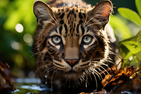 Close-up of a tiger in a jungle, wild dangerous animal.
