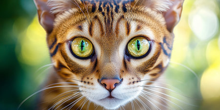 Stunning Bengal Cat with Striking Green Eyes and Unique Markings, Posing Gracefully in Natural Light