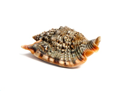 Marine sea shell in a studio setting against a white background