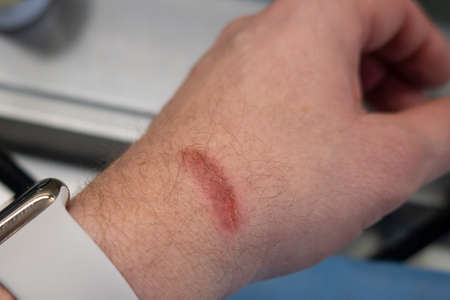 Abrasion scratch on a hand close-up