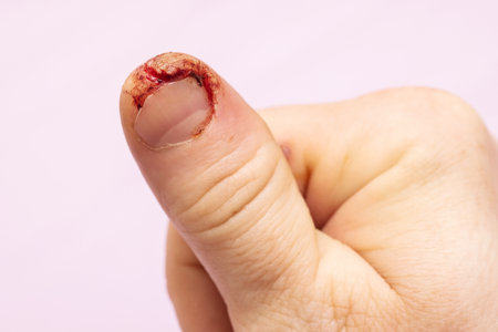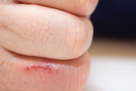 Flesh wound with blood on male finger