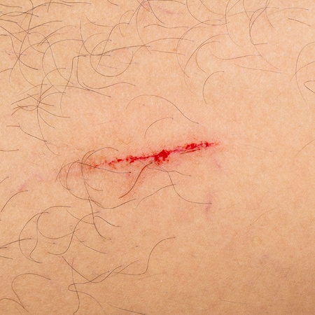 Close-up of a small wound on the knee