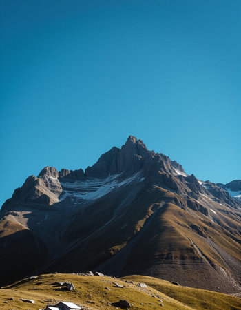 Mountains landscape high peaks scenery wild nature calm scene. Lifestyle active travel, hiking. Scenic scenery of wild snowy mountains and alpine valleys.