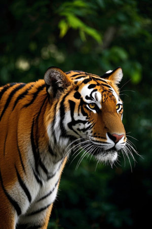 Close-up of a tiger in a jungle, wild dangerous animal.