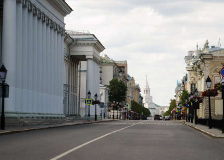 Kremlin street, overlooking the Spasskaya tower of the Kremlin Kazan.