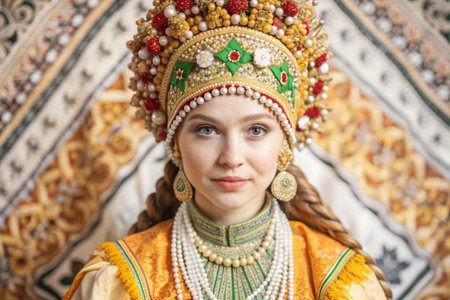 A beautiful girl in a traditional Russian national costume. The portrait symbolizes the traditions of Russia and the beauty of the Russian people.