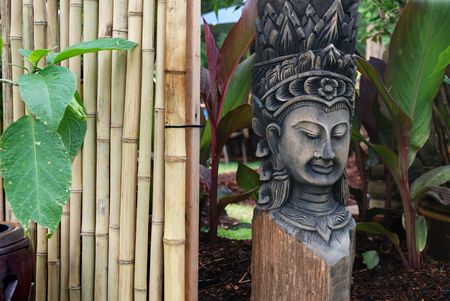 Landscape design in the courtyard of a hotel on the island of Gili Trawangan, Indonesia