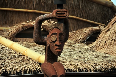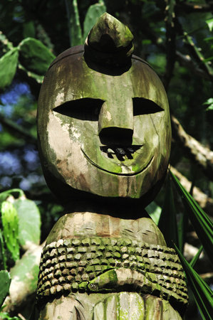 'Aumakua or family Hawaiian god represented in traditional form of wooden carved statue. Pu?uhonua o Honaunau national historical park, Hawaii, the USA.