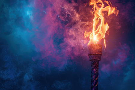 A radiant torch is proudly held high, illuminating the surroundings with its warm light. It symbolizes hope and guidance in a dark environment.
