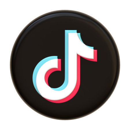 Valencia, Spain, December 2020: 3D rendering of TikTok app icon isolated on a blue and red gradient background. Close-up template of Tik Tok application logo. Tiktok is a Social media network for short videos and music