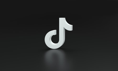 Valencia, Spain - March, 2021: TikTok logo isolated on a dark background and copy space in 3D rendering. Close-up of Tik Tok application logo. Tiktok is a Social media network for videos and music