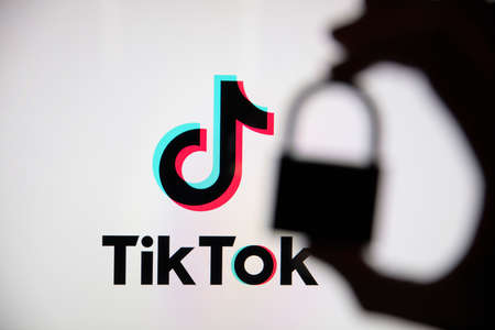 LONDON, UK - April 27 2020: Tik Tok social media icon with a security padlock
