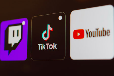 January 8, 2024, Brazil. In this photo illustration the TikTok, Twitch and YouTube logo is displayed on a TV screen