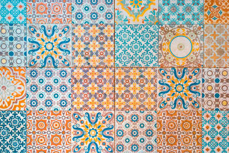 Colorful old abstract retro Azulejo patchwork mosaic background
