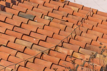 Spanish tile roof. Background texture Mediterranean architectural details.