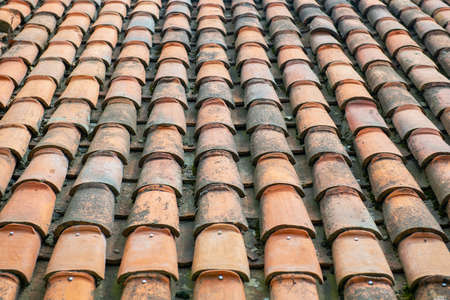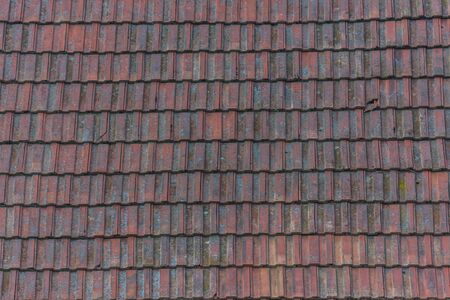 Old Red Ceramic Roof Tiles Background. Old pitched roof