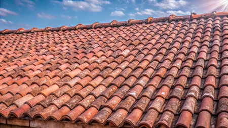 clouseup a roof covered with terracotta tiles