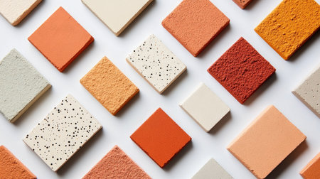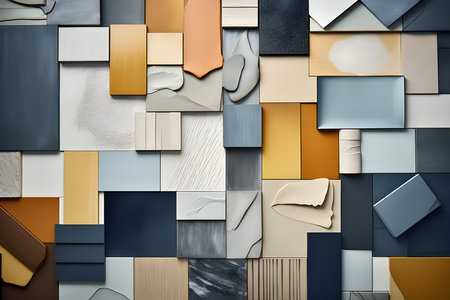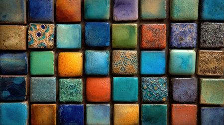 A captivating arrangement of textured tiles in various colors and shapes. Ideal for design projects, interior inspiration, and creative layouts showcasing vibrant palettes.