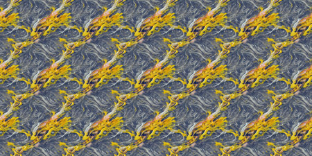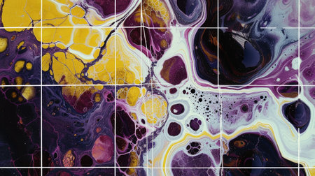 Close up of tiles of marble was painted by abstract color with purple, yellow and white mixed background. Painting was painted with elegance colorful splashing ink brush at light marble tiles. AIG42.