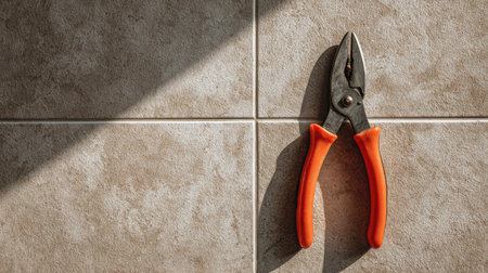 This image features a close-up view of pliers with orange handles resting on a tiled surface, emphasizing tools commonly used for various home improvement tasks.