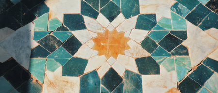 Ornate Arabic style mosaic tile flooring showcases ancient elegance indoors generated by artificial intelligence