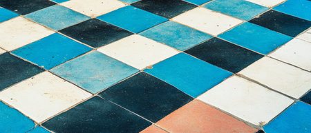 Checkerboard tile pattern exhibiting classic and timeless design in vibrant colors