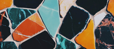 A captivating close-up shot of a mosaic wall, showcasing vibrant colors and intricate details. This image highlights the unique pattern and texture, perfect for design inspiration.