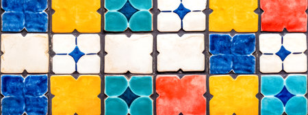 Close-up image of colorful ceramic tiles on the wall