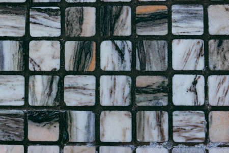 Pattern of small tiles creating a mosaic texture with stone and marble surfaces