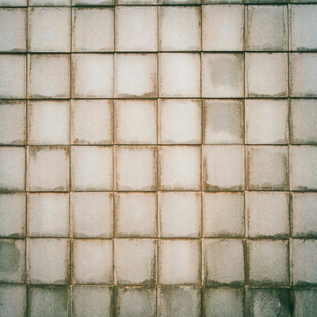 Old ceramic tile wall background, vintage color tone style, selective focus.