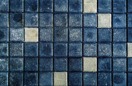 Blue white art design patterns of piece tile decorative on old floor background