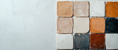 Rustic tiles with cracked glaze on a textured background.