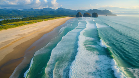 A mesmerizing scenery of ocean waves at Cannon Beach, Oregon, USA