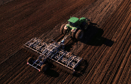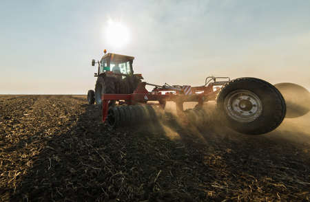 Tractor preparing land for sowing