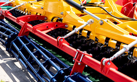 Beautiful new disc harrow closeup on a sunny day