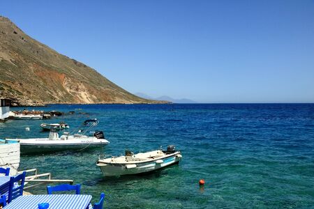 clear water bay of Loutro town on Crete island in Greece