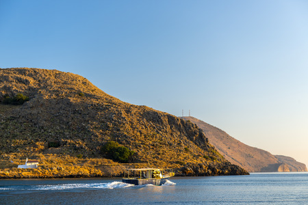 Fishing boat heading out to the mediterranean sea in the early morning