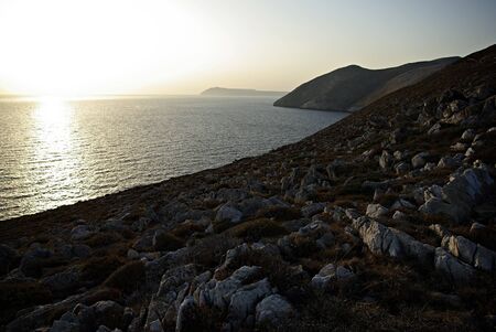 Magnificent sunset over Milos island coastline in Greece