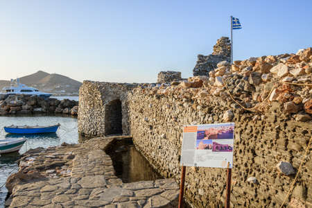 Paros, Greece - September 27, 2020: The Venetian castle of Naoussa, Paros island, Greece.