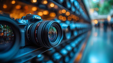 A stylish close-up of a camera lens with a blurred bokeh background, creating a modern and artistic composition. Perfect for photography and technology themes.