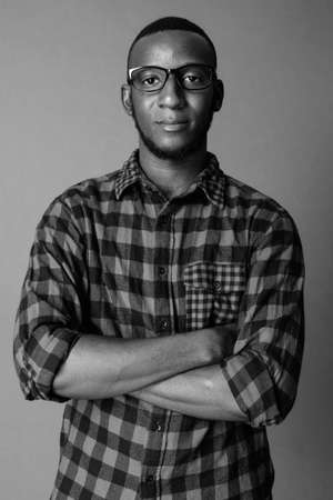 Portrait of young handsome bearded African hipster man with eyeglasses